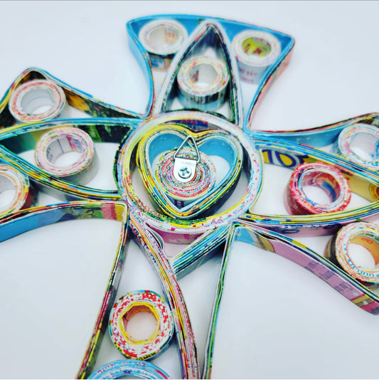 Cross with Angel Wings, Handmade Recycled Paper Decor
