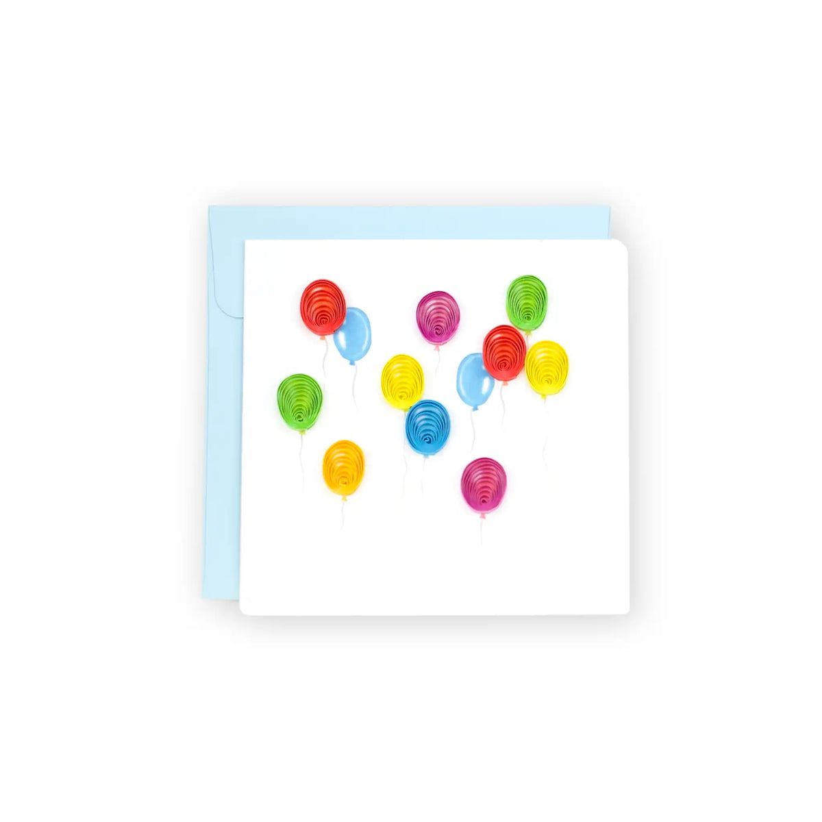 Celebrate with your cherished ones and show them you’re thinking of the with our rainbow balloon card! Bright balloons have long been used to celebrate those occasions most precious to us. Whether you need a special birthday card, or just want to be prepared for your next celebration. Made from sturdy cardstock and featuring one of our unique quilling designs, this handmade card may be the thoughtful, one-of-a-kind gift you’re looking for!