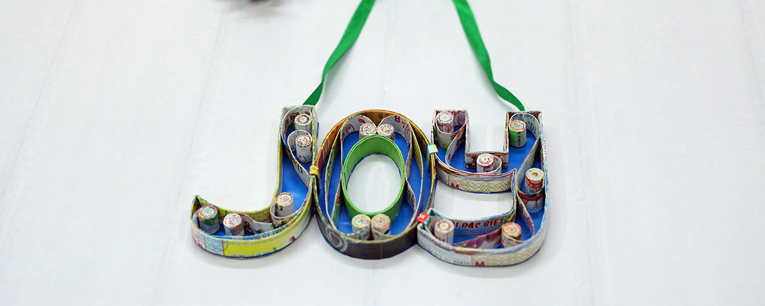 Sometimes, we all need a little extra joy. This handmade ornament may be just the thing – whether you need a new piece of art for your own space or want to send some positivity to a dear one! Made from recycled paper, this ornament is sure to help you bring a little joy!